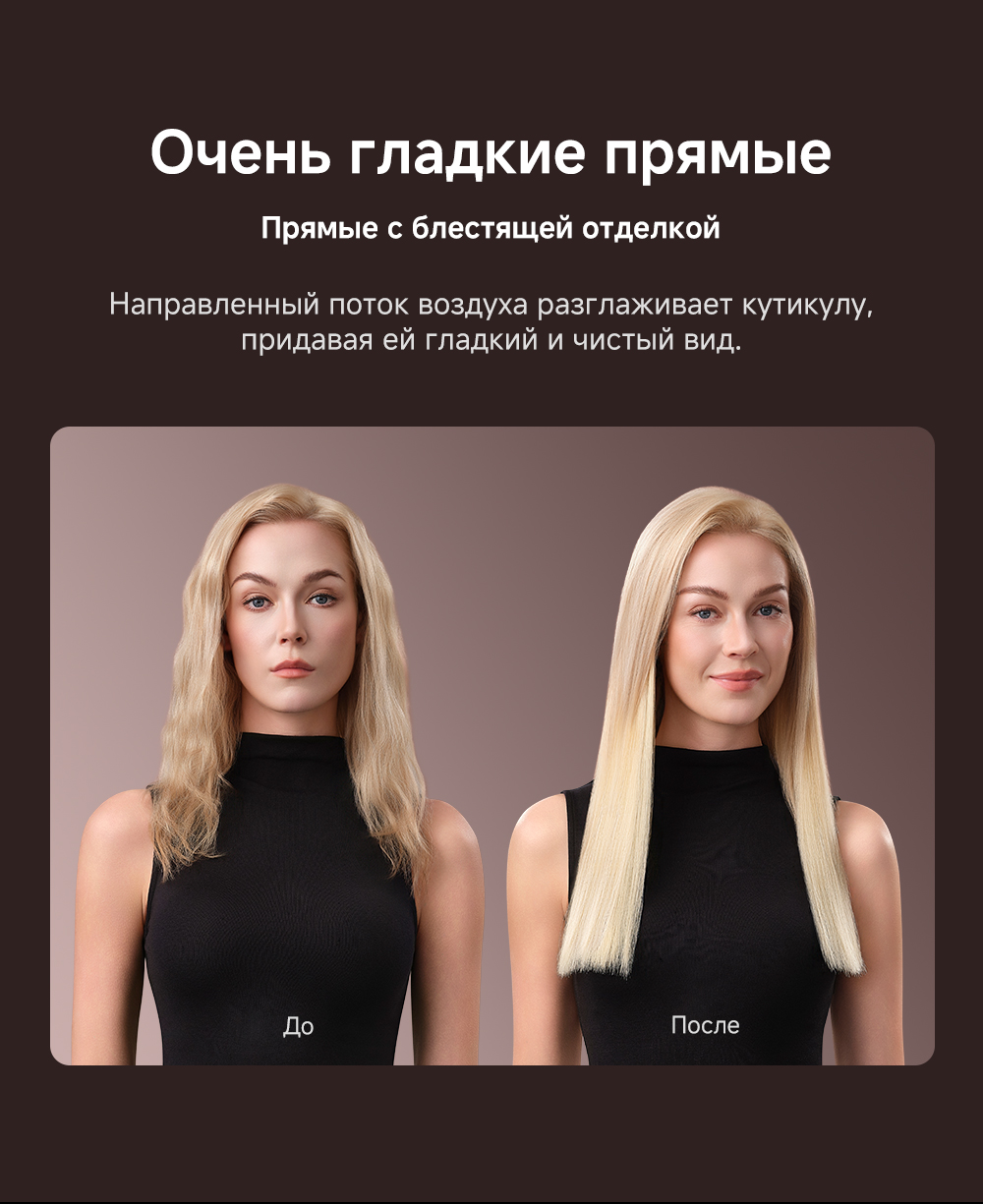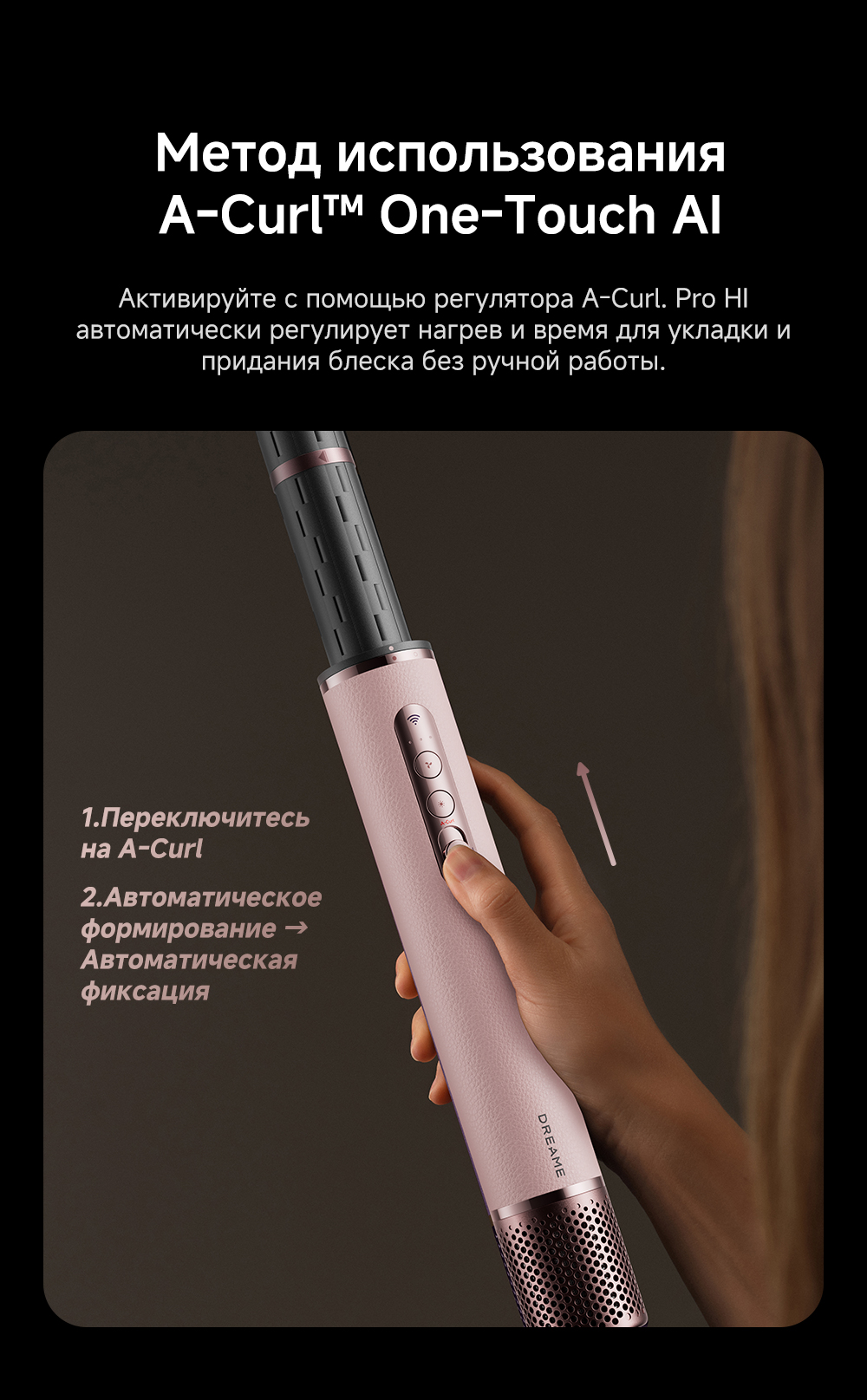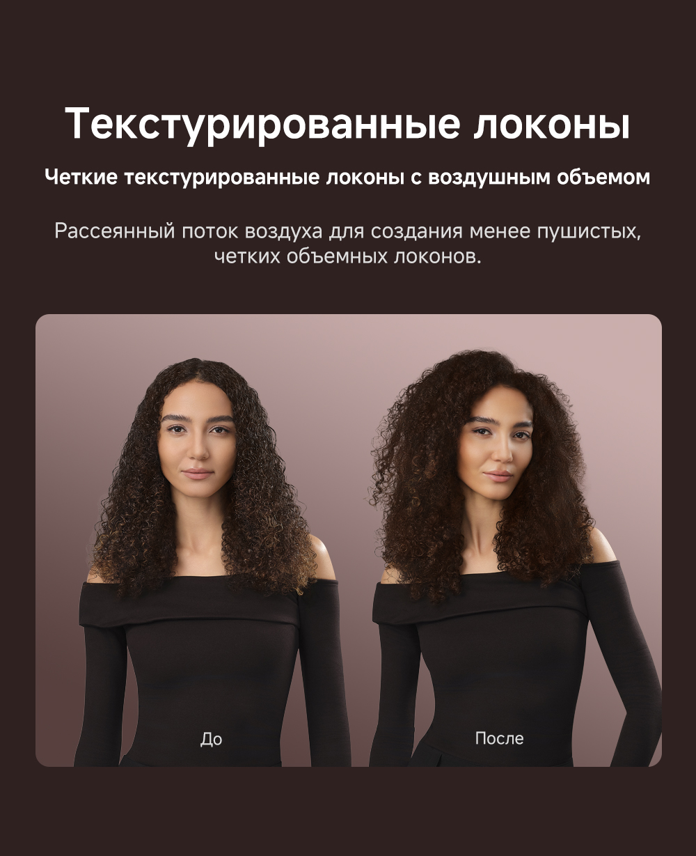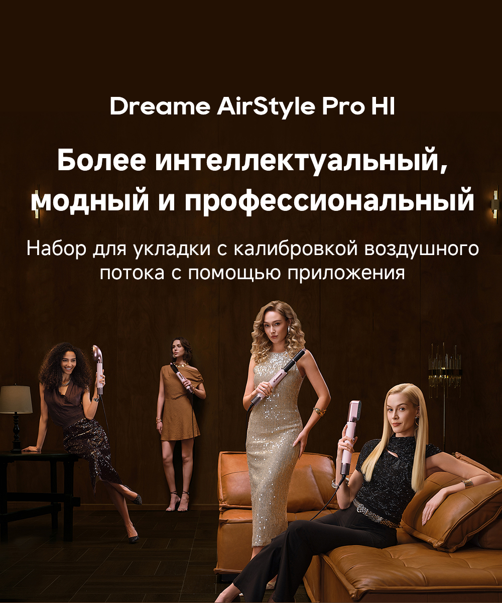 Высокая скорость воздушного потока - 70 м/с. 8 профессиональных насадок. AirStyle Pro HI проверяет температуру до 1000 раз в секунду с помощью NTC термистора и поддерживает стабильный безопасный воздушный поток. Мощный направленный поток воздуха. Двухслойный входной воздушный фильтр: внутренняя сетка из нержавеющей стали задерживает мелкие частицы, а внешняя предотвращает их спутывание. Антизапутывающийся кабель с вращением 360°. Текстурированное покрытие корпуса из мягкой зернистой кожи. Фирменное приложение Dreamehome анализирует тип волос и предпочтения, предлагая персональные решения для укладки.