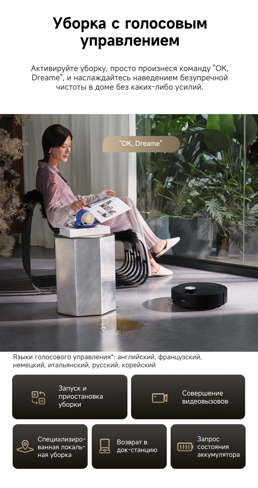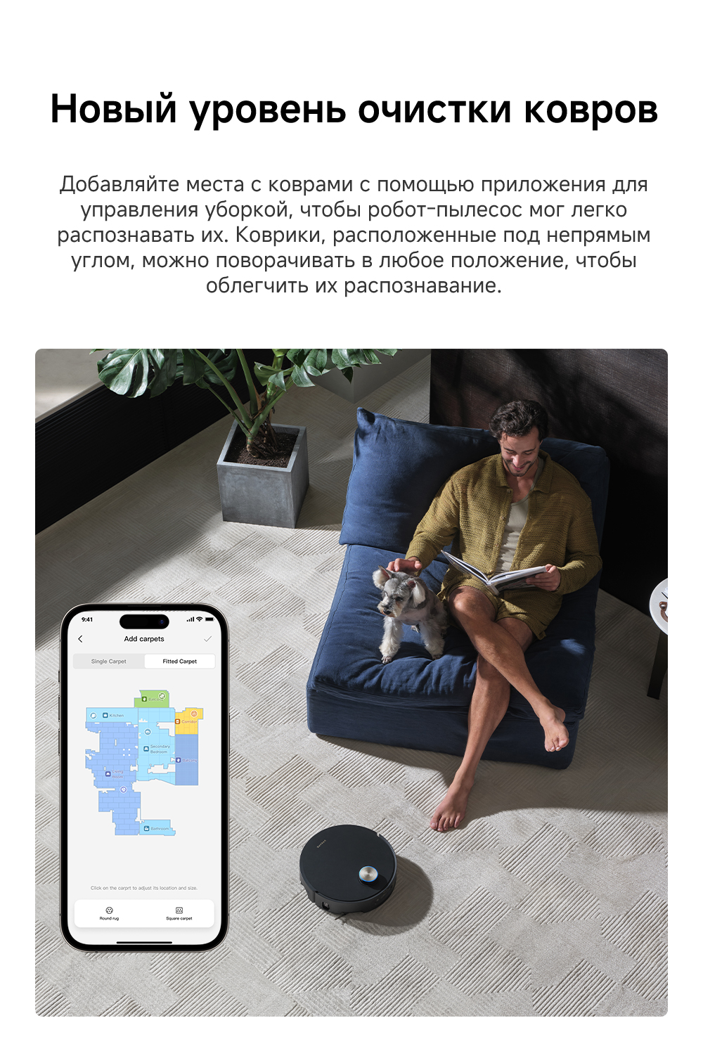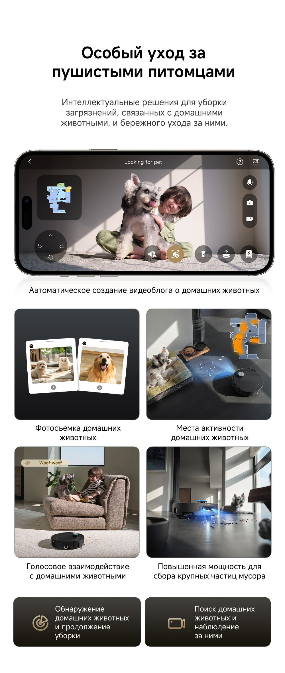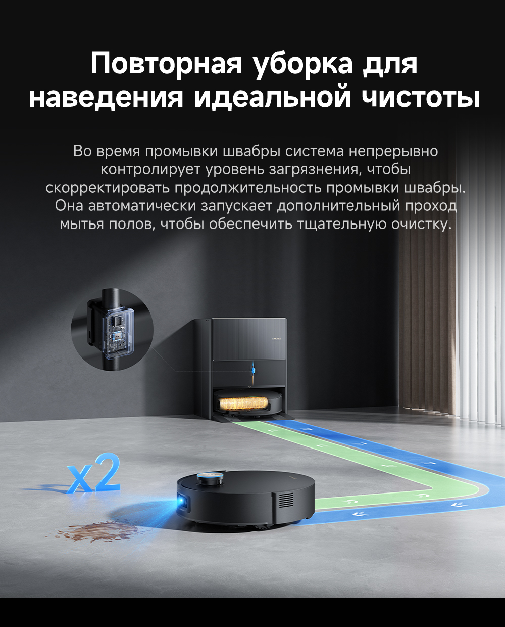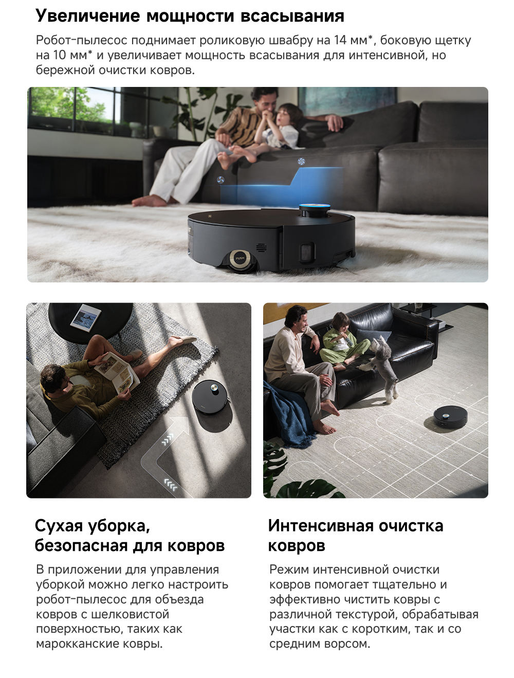 Первый в мире моющий робот-пылесос с технологией AquaRoll, обеспечивающий адаптивную уборку во всем доме. Система Vormax с мощностью всасывания 30 000 Па. Система HyperStream с двумя щётками для предотвращения спутывания волос. Технология мытья полов AquaRoll - система регулировки подачи воды с 12 форсунками, роликовая швабра вращается со скоростью 100 оборотов в минуту, скребок роликовой швабры отжимает грязную воду, которая затем направляется в контейнер для использованной воды, насос высокого давления быстро всасывает грязную воду и подает свежую воду на салфетку для швабры, обеспечивая автоматическую очистку во время мытья полов, чтобы швабра оставалась чистой и готовой к работе. Технология FluffRoll - роликовый модуль для восстановления мягкости швабры располагается за шваброй и вращается в противоположном направлении. Защита роликовой швабры AutoSeal - при заезде на ковры крышка роликовой швабры автоматически закрывается, чтобы предотвратить попадание воды на ковёр. Преодоление порогов высотой до 8 см (двухуровневый порог 4+4 см/одноуровневый порог 4.2 см). Система AstroVision, умный объезд препятствий на базе NVIDIA и обучением - распознавание более 240 типов предметов. Навигация VersaLift - автоматическое поднятие и убирание лидара (высота роботы-пылесоса с опущенным лидаром 9.8 см). Автоматическая очистка швабры на док-станции при температуре 100°C.