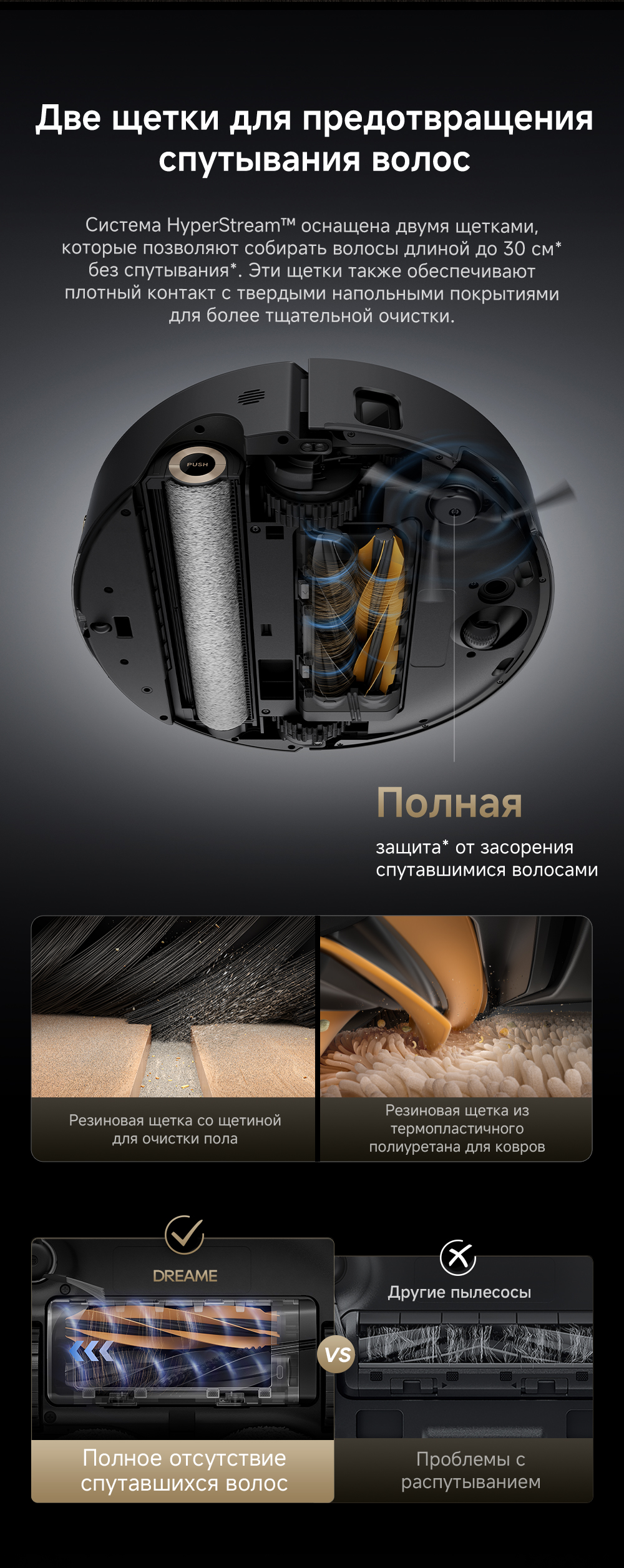 Edge-Cleaning Brush Roller / Двойная распутывающая щетка HyperStream™