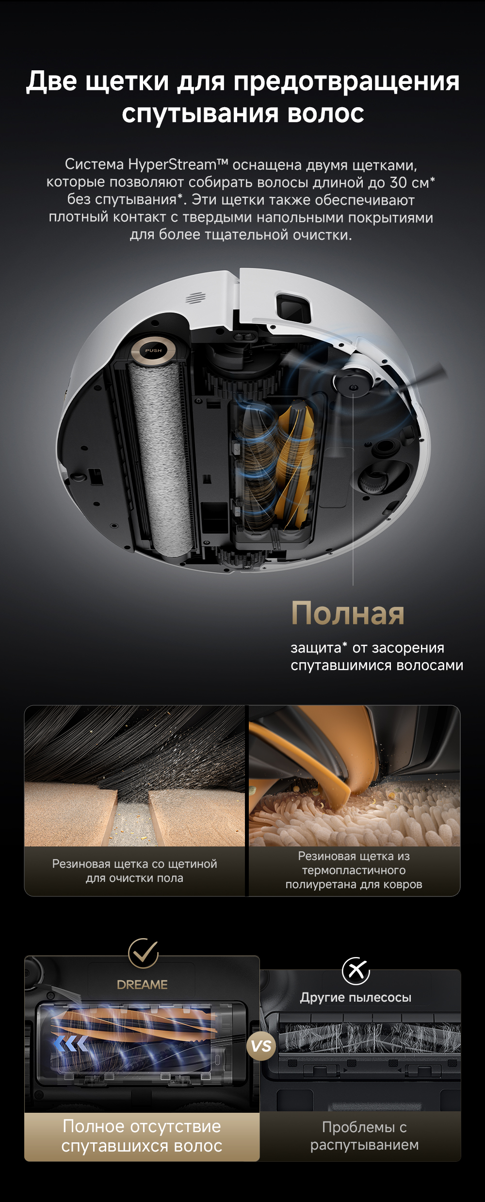 Edge-Cleaning Brush Roller / Двойная распутывающая щетка HyperStream™
