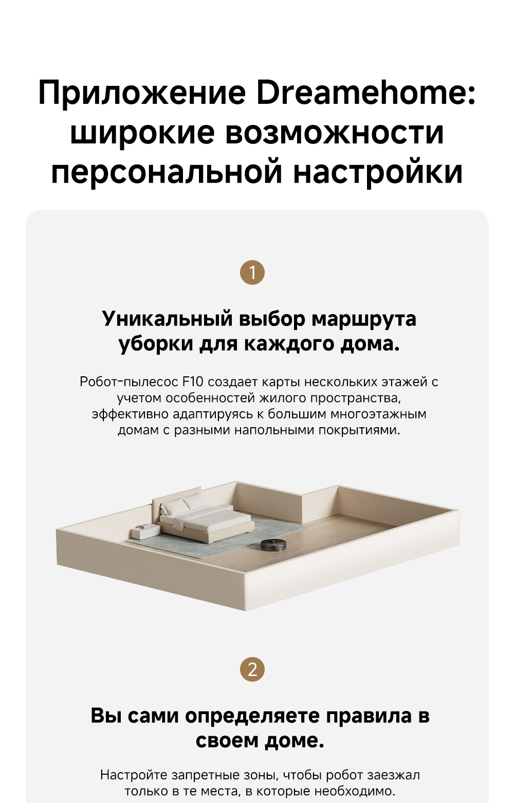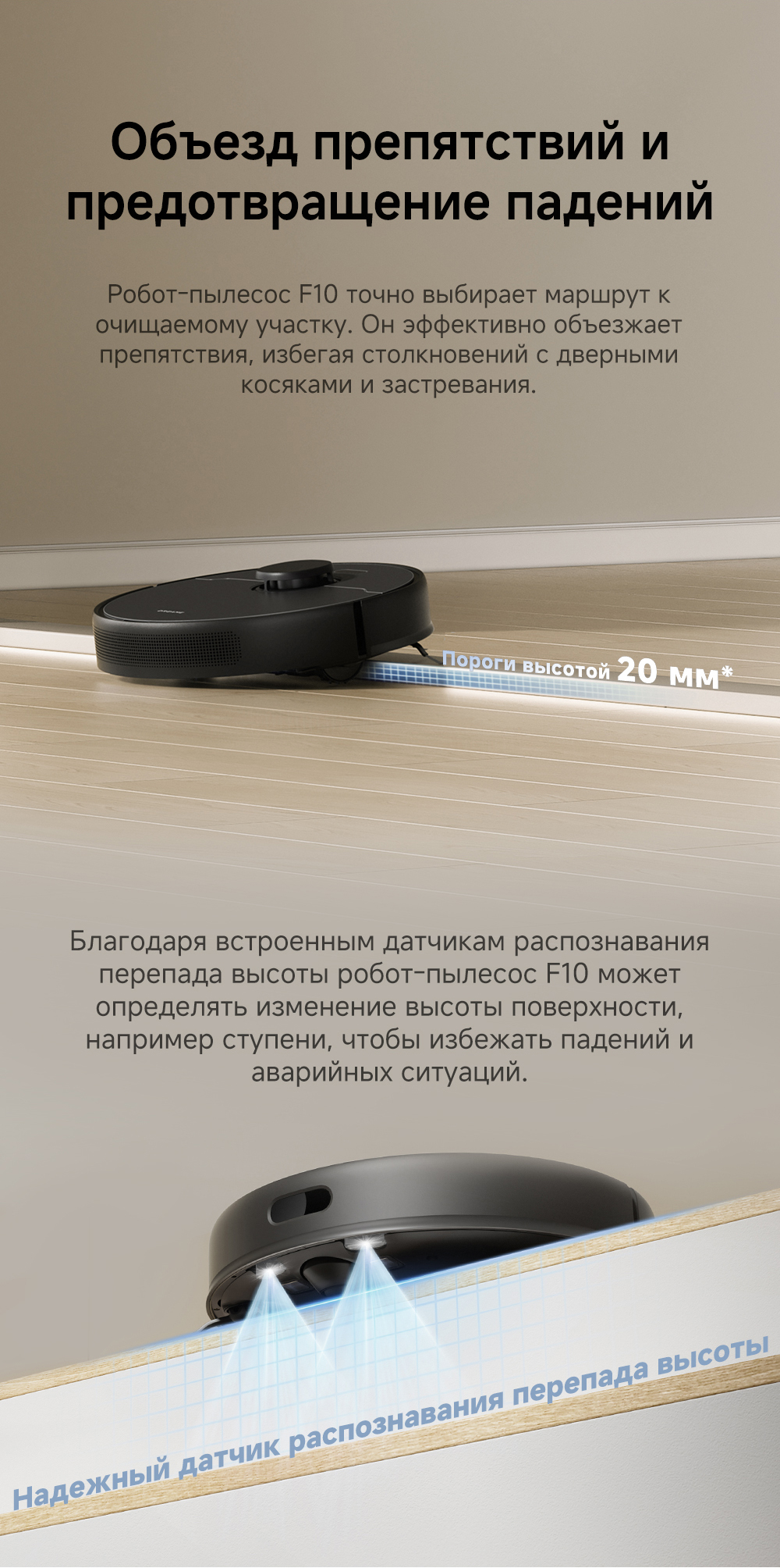 АртикулRLF11SAТипРобот-пылесосСвязанные элементы по цветуВзаимодействие с приложениямиDreamehomeИнтеграция с умным домомДаУправлениеCо смартфона / Кнопочное / Через приложениеЁмкость аккумулятора5200 мАчЦветчерныйОсобенностиПлавающая основная щётка эффективно убирает пыль и шерсть с ковров и твёрдых напольных покрытий. Быстрое составление карт, интеллектуальная система навигации Pathfinder. Автоматическая регулировка мощности всасывания на коврах.СерияF - серияТип уборкиВлажная / СухаяМаксимальная мощность всасывания, кПа13ТаймерЕстьКоличество режимов уборки3Поддержка Wi-FiЕстьУправление с помощью смартфонаЕстьСистема фильтрацииHEPA-фильтрСоставление плана помещенияЕстьУборка ковровЕстьУборка шерсти животныхЕстьОбъем пылесборника, мл235Высота преодоления препятствий, см2Обнаружение препятствийЕстьОграничитель зоны уборкиВиртуальная стенаОбъем контейнера для чистой воды, л0.57КомплектацияРобот-пылесос, док-станция, инструмент для очистки, руководство пользователя.Кнопкивкл/выкл / кнопка "Домой"ДвигательБесщеточныйПодсказкиЕстьМодельF10Влажный тип уборкиДаМинимальная цена со скидкой799Краткое наименованиеF10Навигационная системаLDSГабариты35x35x9.7 смВес3,28 кгИзготовительDreame Trading (Tianjin) Co. Ltd., Китай, Room 2112-1-1, South District, Finance and Trade Center, No.6975 Yazhou Road, Dongjiang Bonded Port Area, Tianjin Pilot Free Trade Zone, TianjinИмпортерООО "АйТи Дистрибуция", 223053, Республика Беларусь, Минская область, Минский район, Боровлянский с/с, 103/3-7, помещение №7-50Гарантийный срок12 месяцев