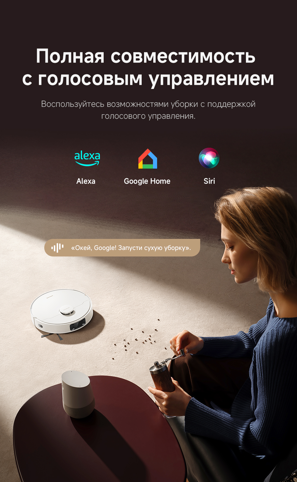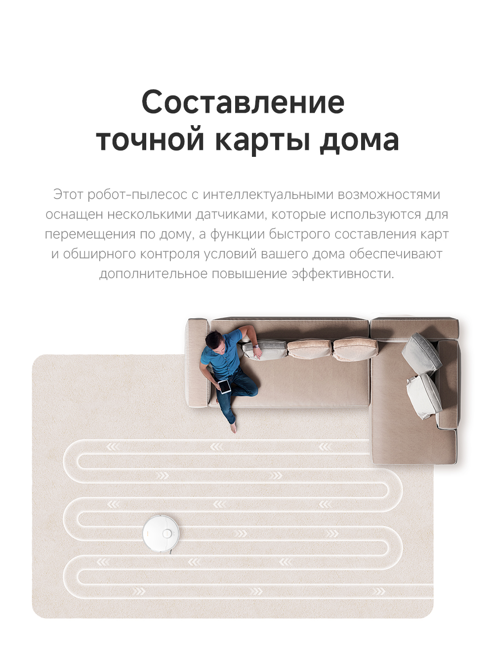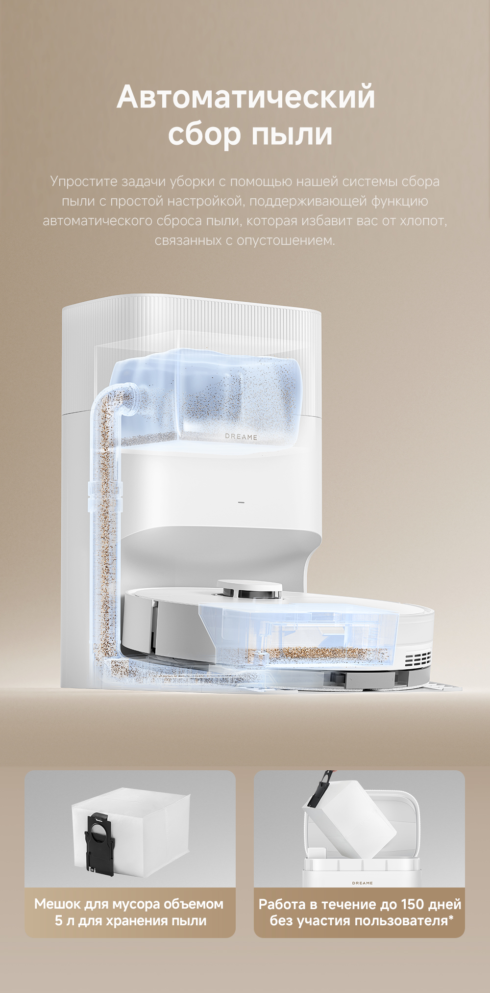 Робот-пылесос, базовая станция с автоматическим опустошением сухого мусора, запасной мешок для пыли, руководство пользователя, руководство по эксплуатации.