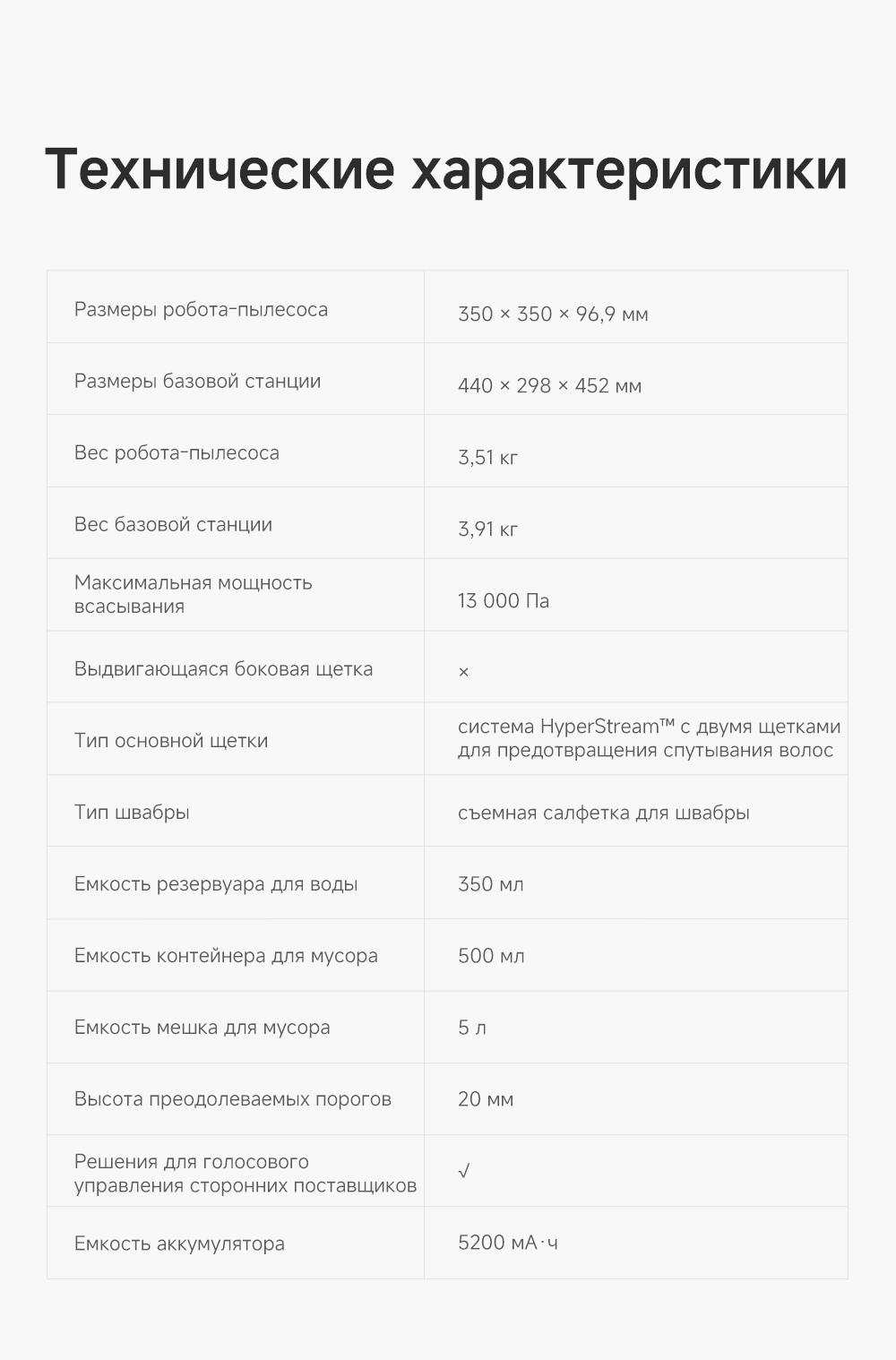 Робот-пылесос 3.51 кг, базовая станция 3.91 кг