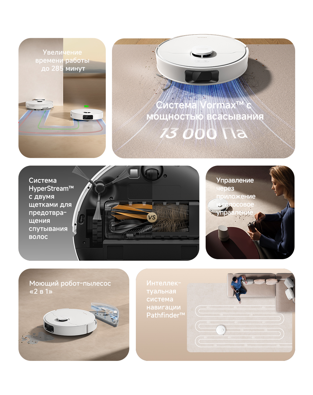 Система HyperStream с двумя щетками для предотвращения спутывания волос. 32 уровня увлажнения швабр позволяют подстроить влажную уборку для любого типа покрытия. Эффективная уборка вдоль стен и вокруг мебели. Решение 2 в 1 для сухой уборки и мытья пола.