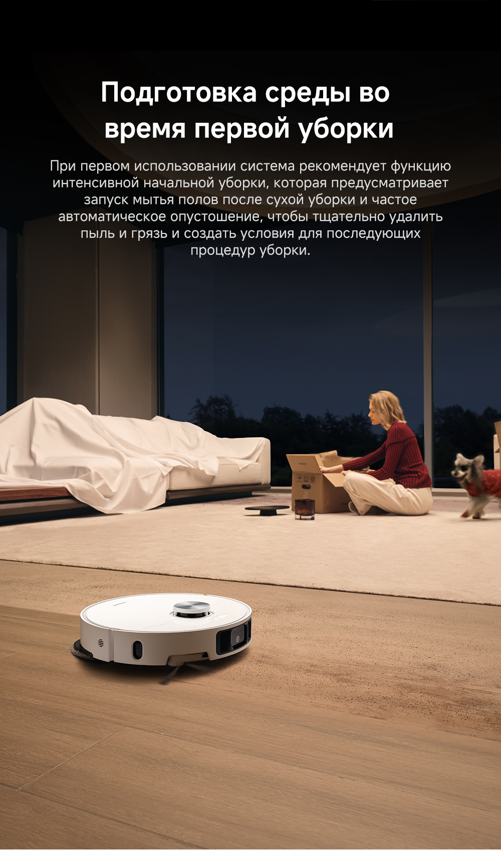 Робот-пылесос 35х35х97 см, размеры док-станции 34х45.7х59 см