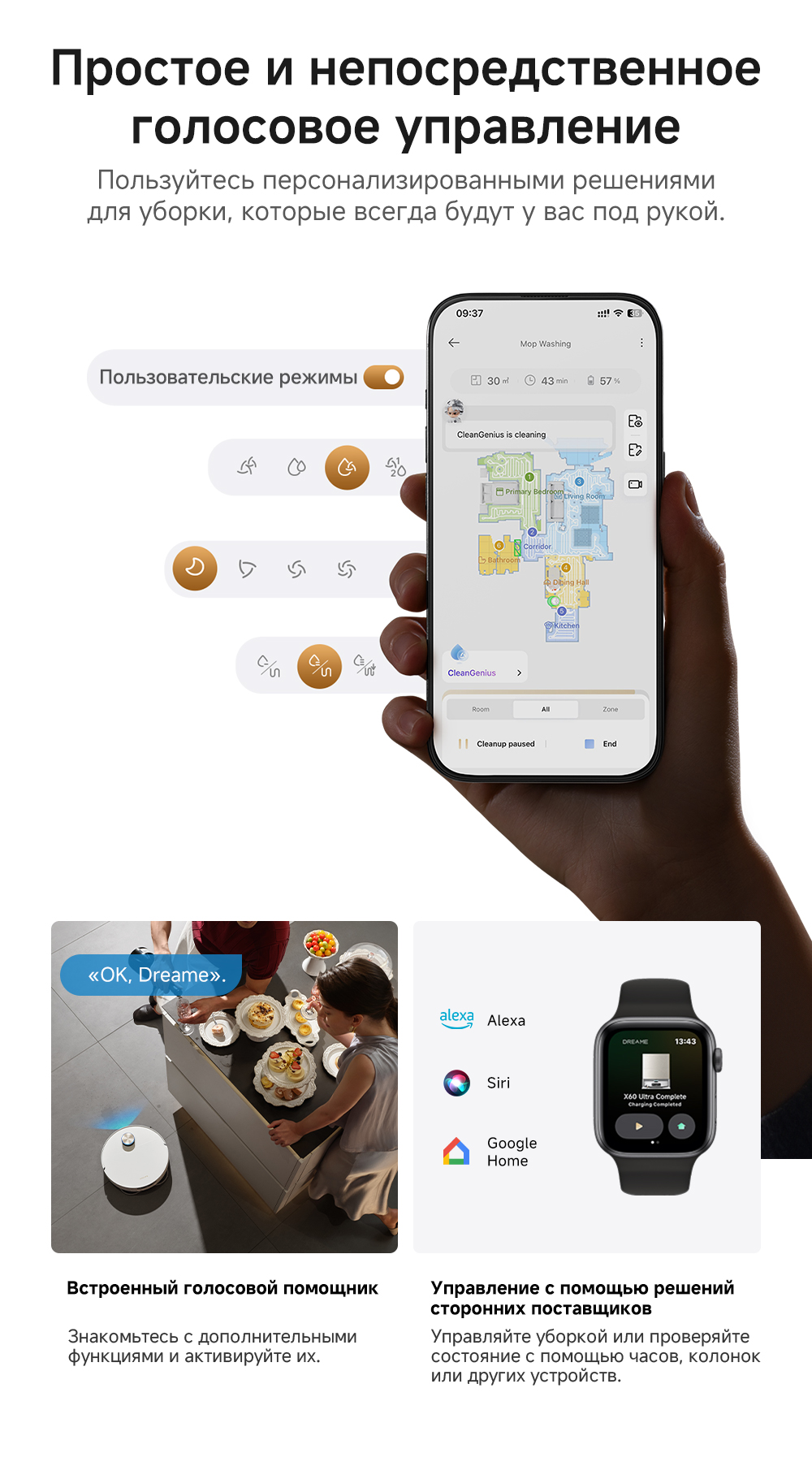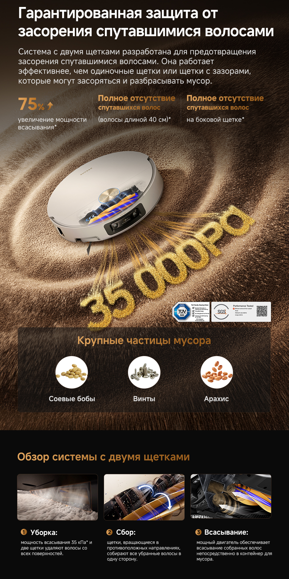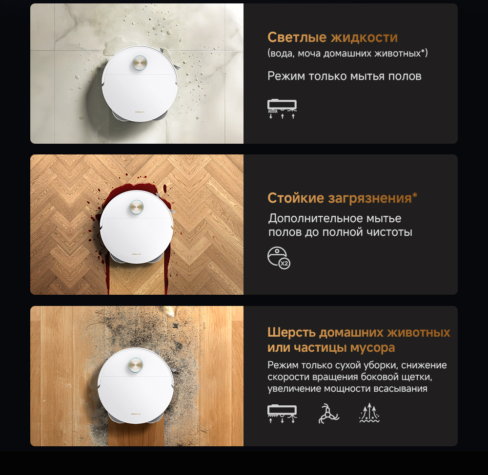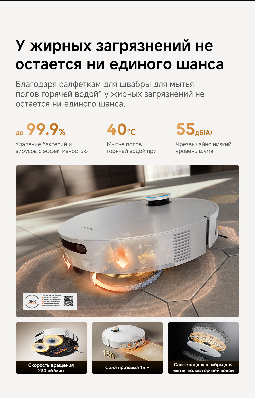 Ультратонкий корпус высотой 7,95 см для эффективной уборки под низкой мебелью. Система обнаружения загрязнений нового поколения с активной подсветкой для обнаружения, адаптации и тщательной уборки. Бинокулярная система зрения, точность уборки до миллиметра, распознаёт более 280 типов предметов. Новые возможности преодоления высоких препятствий, робот-пылесос Dreame X60 Ultra Complete способен преодолевать препятствия высотой до 8,8 см. Поддержка мощности всасывания 35 кПа для очистки ковров благодаря улучшенной герметичности. Автоматическая очистка швабр при температуре 100 °C.
