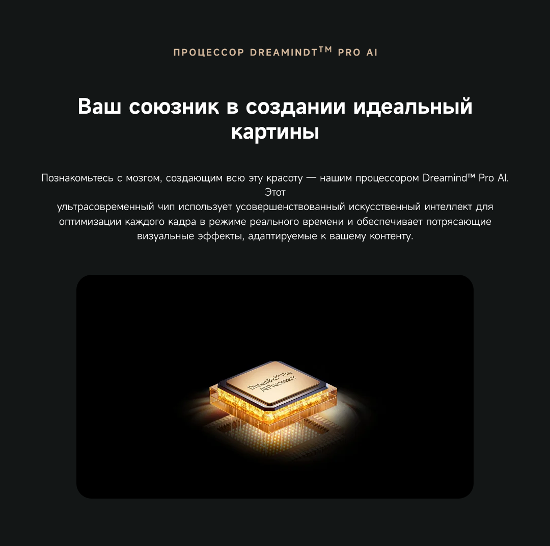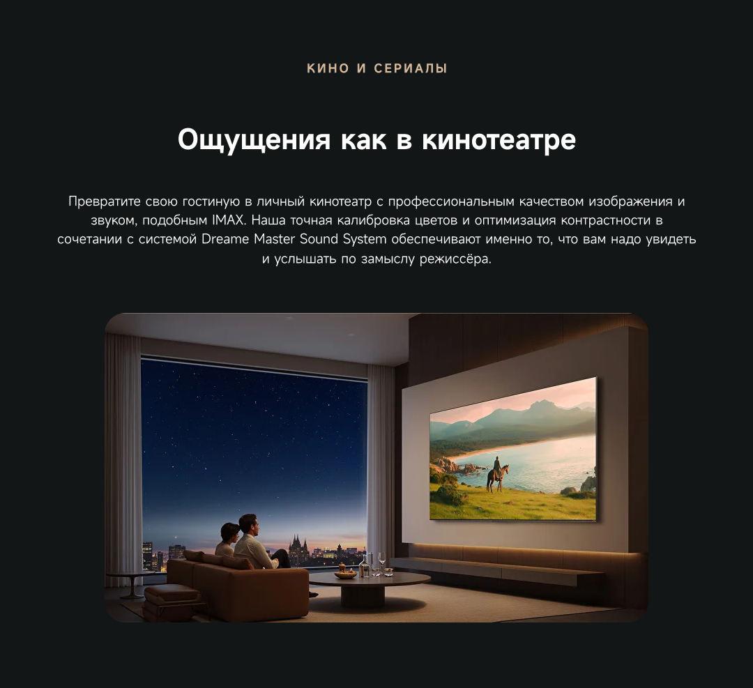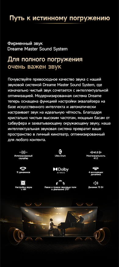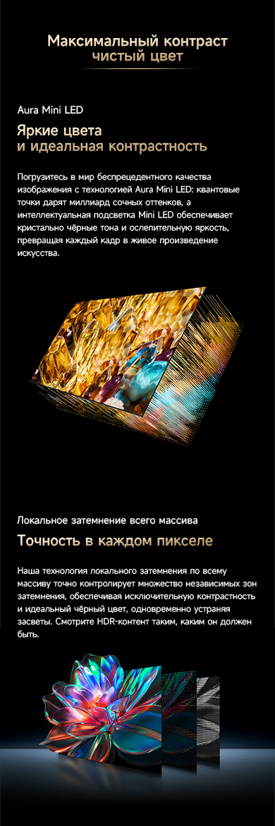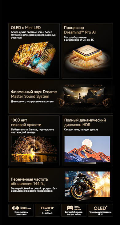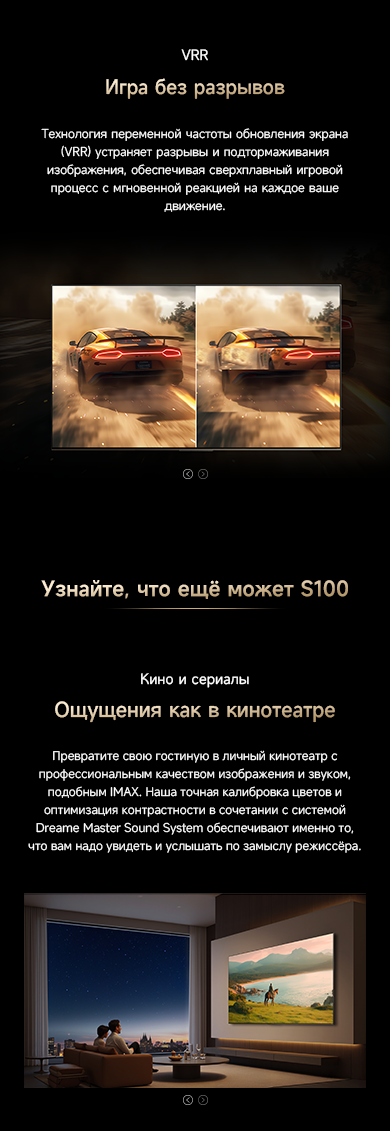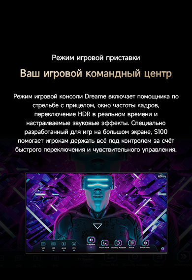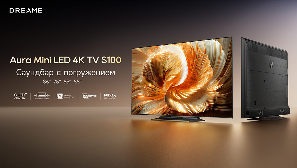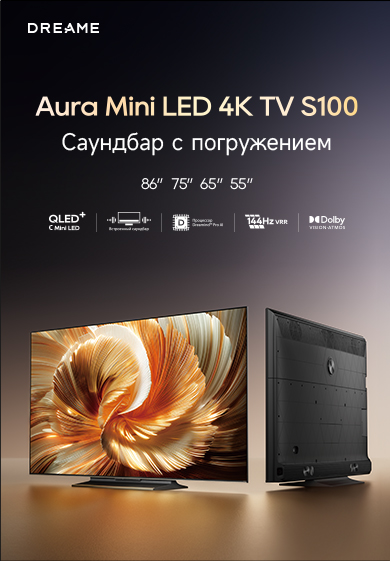 Оснащенный передовой технологией Aura Mini LED, телевизор Dreame TV S100 переосмысливает домашние развлечения, предлагая невероятно насыщенные цвета и глубокий, захватывающий контраст. Но впечатления не ограничиваются экраном - Dreame идет дальше, интегрируя премиальную звуковую панель прямо в телевизор. Никаких дополнительных настроек - только безупречное аудио-видео в одном устройстве.