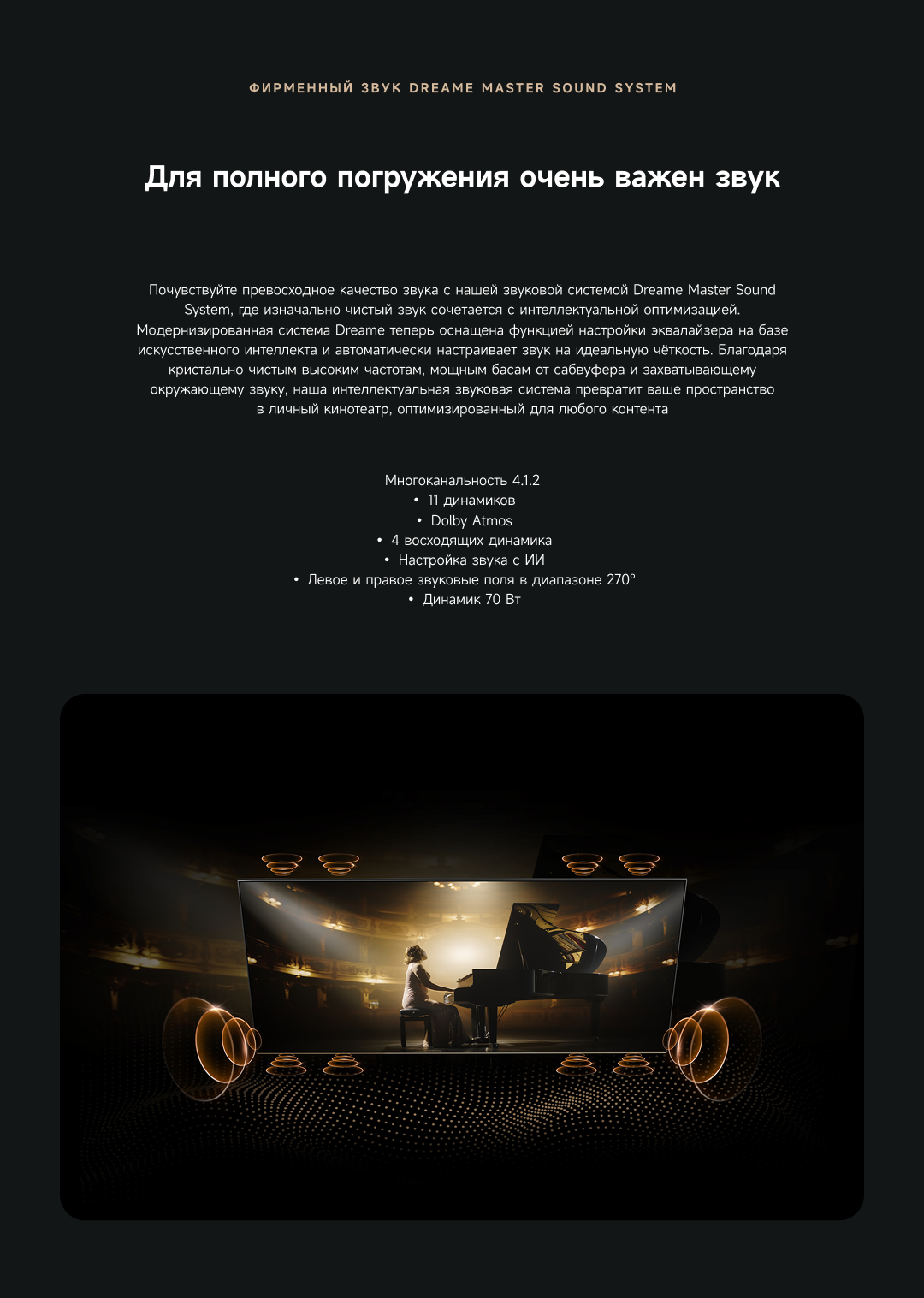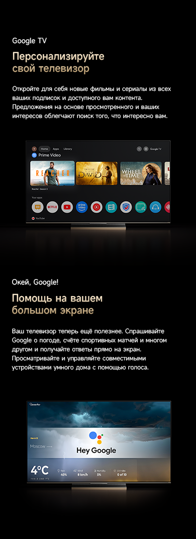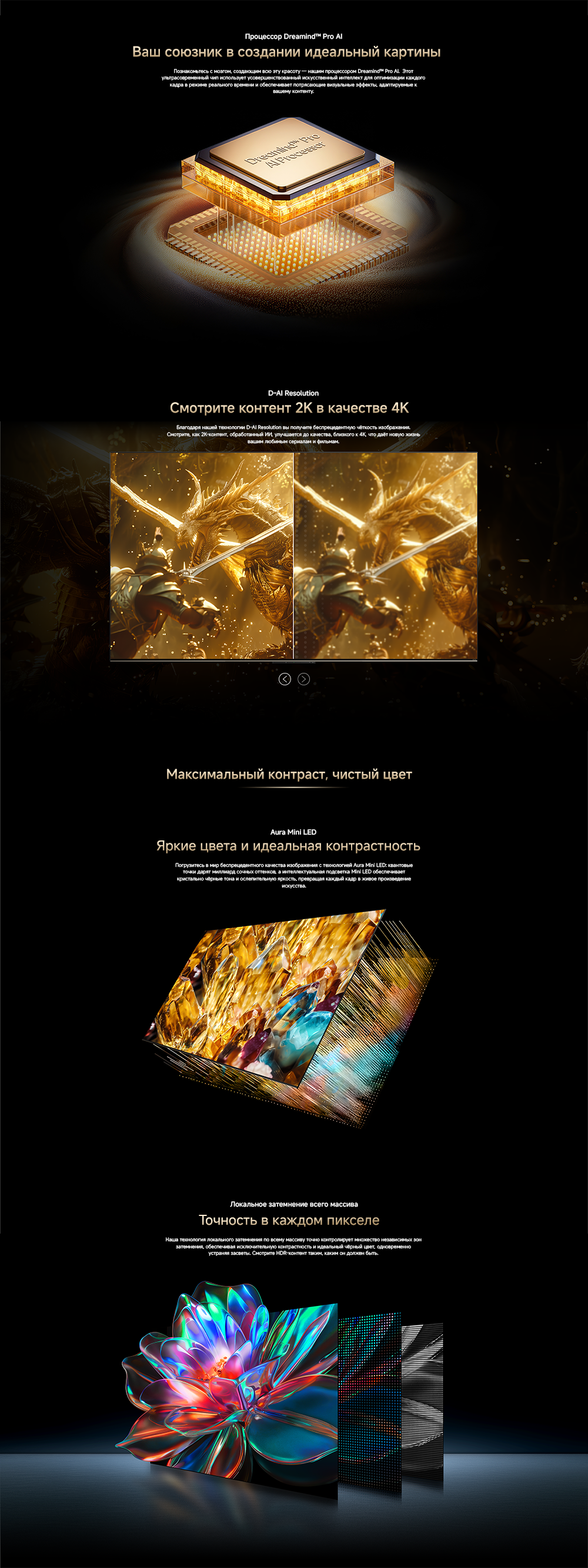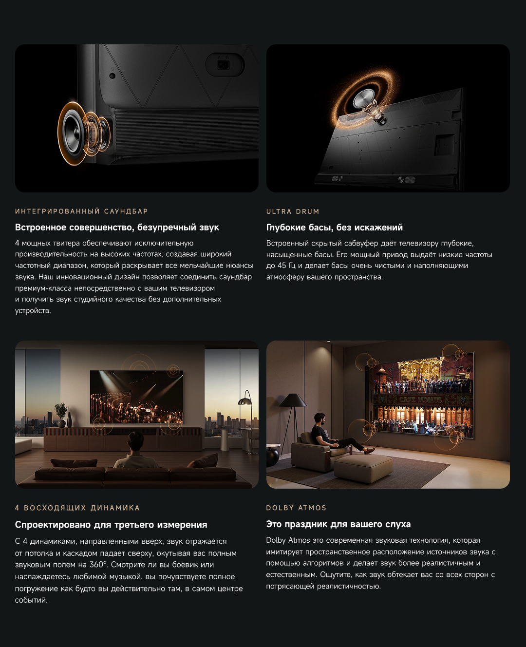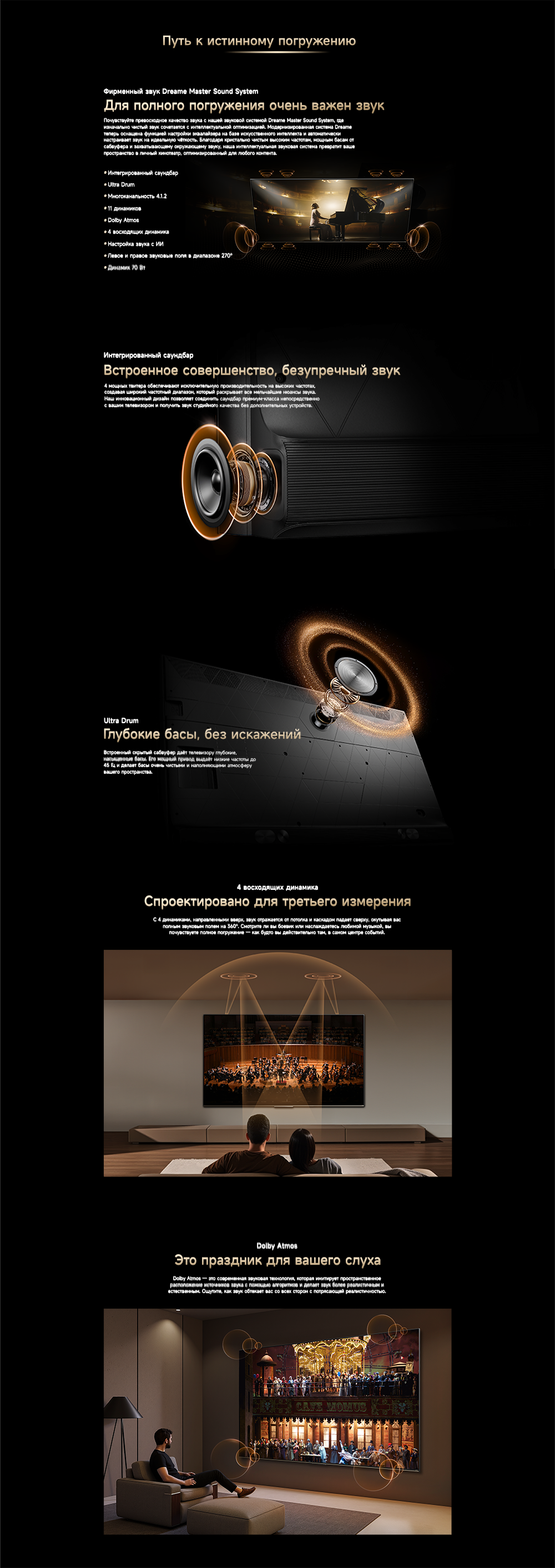 Оснащенный передовой технологией Aura Mini LED, телевизор Dreame TV S100 переосмысливает домашние развлечения, предлагая невероятно насыщенные цвета и глубокий, захватывающий контраст. Но впечатления не ограничиваются экраном - Dreame идет дальше, интегрируя премиальную звуковую панель прямо в телевизор. Никаких дополнительных настроек - только безупречное аудио-видео в одном устройстве.