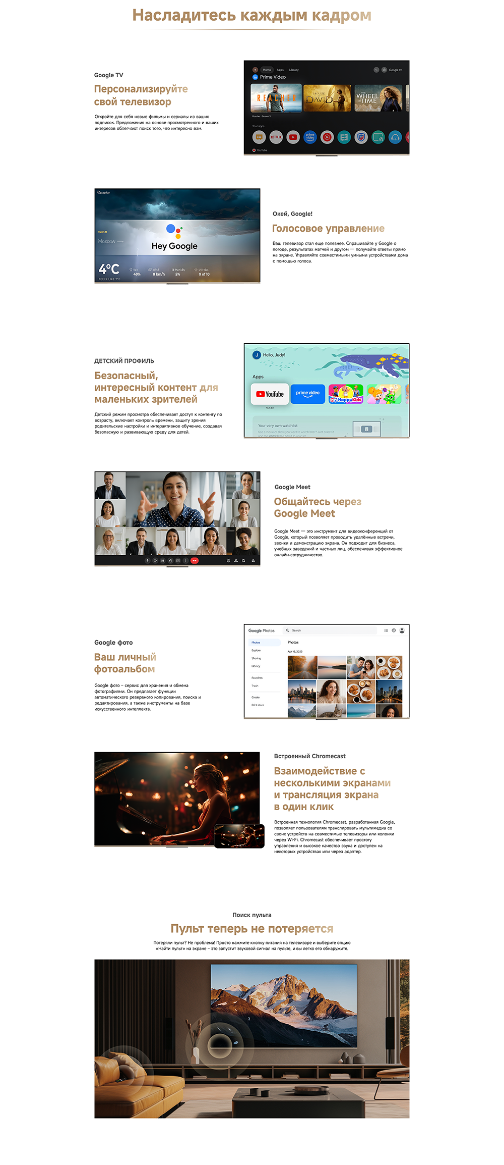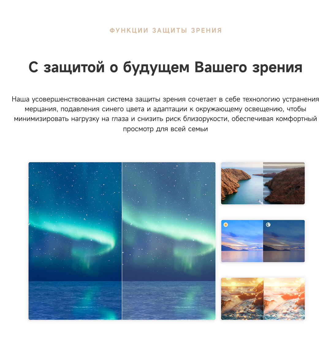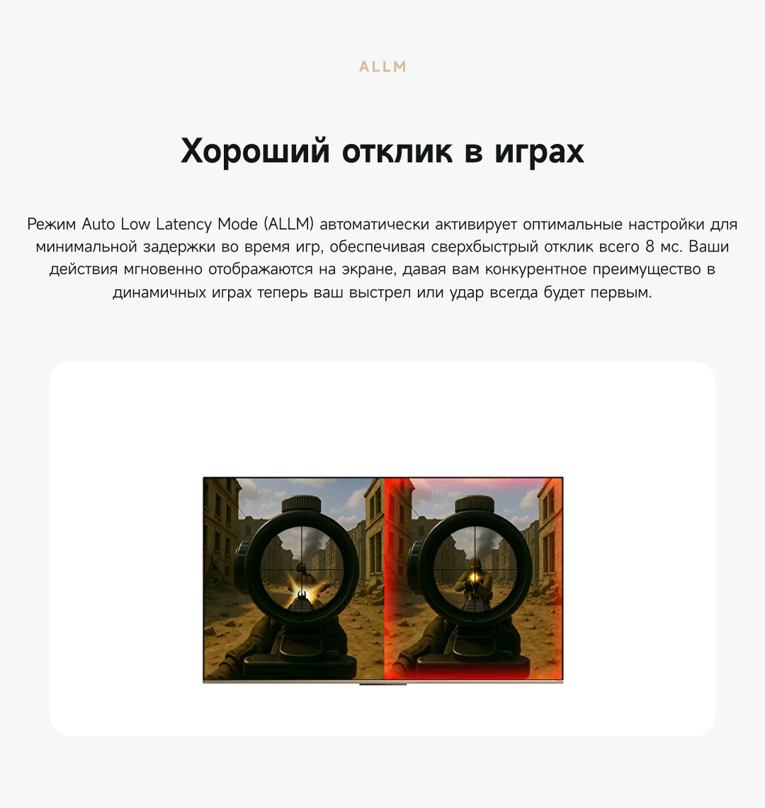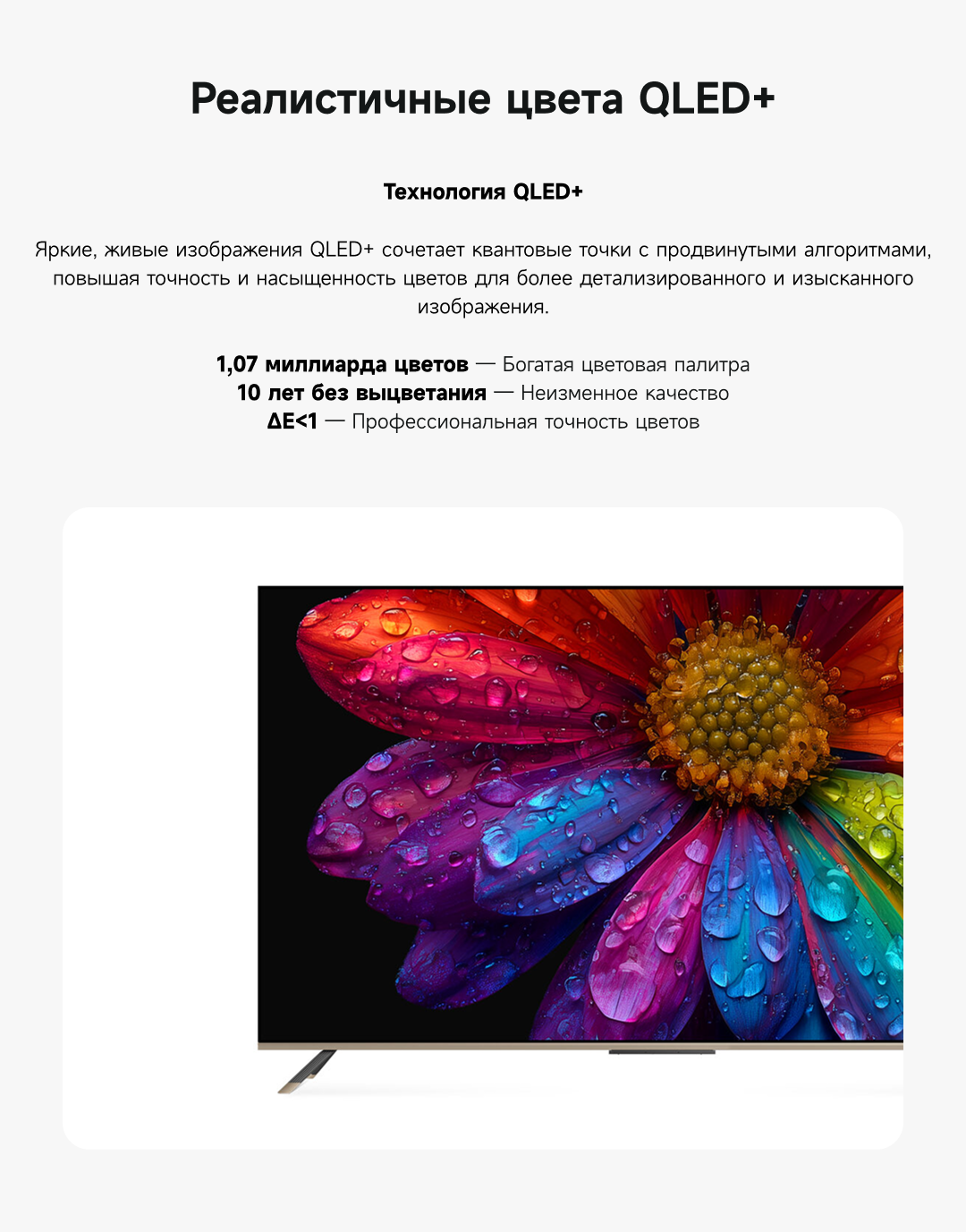 Цветовая палитра 1.07 миллиарда цветов. 10 лет без выцветания. Технология на основе ИИ улучшает быстро движущиеся сцены, устраняя размытие и делая изображение плавным. Высокая частота обновления 120 Гц с технологией True Motion обеспечивает плавное и чёткое изображение. Режим игровой консоли Dreame включает помощника по стрельбе с прицелом, окно частоты кадров, переключение HDR в реальном времени и настраиваемые звуковые эффекты. Опция "Найти пульт".